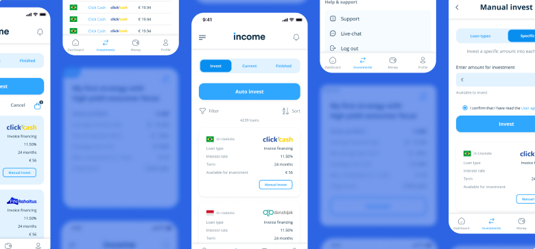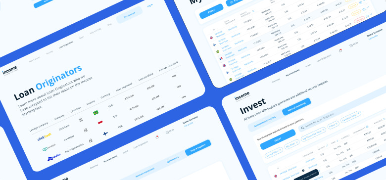 After composing a competitor UX research, the team proceeded with creating Getincome’s web application structure and user flow. Next, our product designers dived into designing the high-fidelity wireframes, along with the style guides and UI kit. We focused on helping the user understand the functionality of the app. Later on, we have also co-operated with the developers and designed the UI Kit for the mobile application.