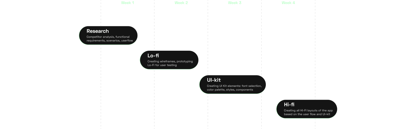 We conducted an extensive UX-work, which included analyzing competitor applications, compiling technical requirements and documentation, compiling scenarios and user flow.